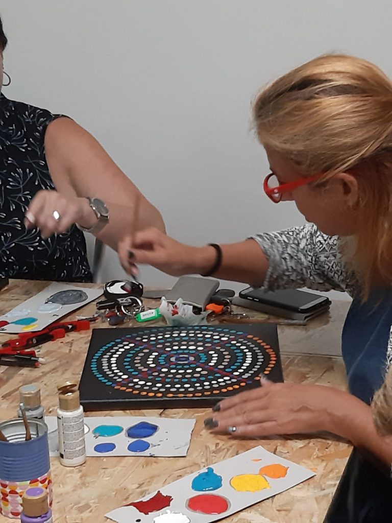 שעתיים קסומות של סדנה משובחת המבוססת על משחק חברתי ויצירה להעצמת החוגג או החוגגת. לבחירתכם יצירת מנדלה מנוקדת או תמונה על עץ. את היצירות המוזמנים לוקחים לביתם, ניתן להחליף את פעילות היצירה בפעילות עם קלפי העצמה.